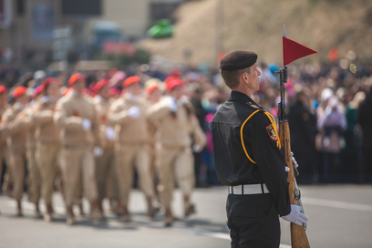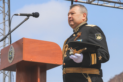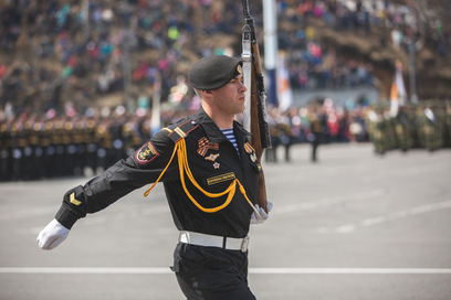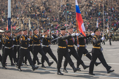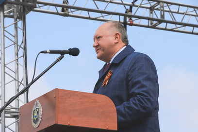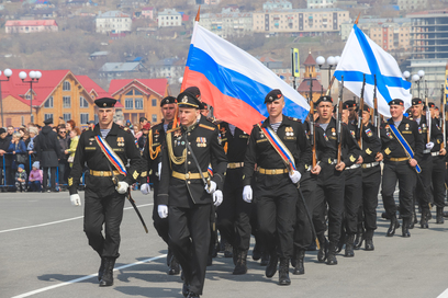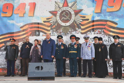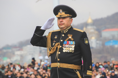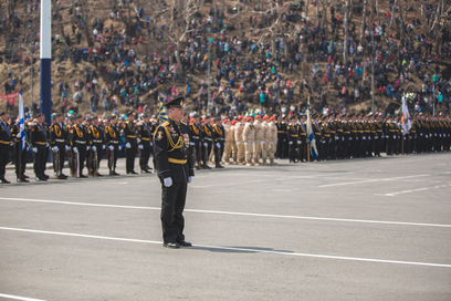 После того, как по площади имени В. И. Ленина прошли парадные расчеты, камчатцев поздравили командующий Войсками и Силами на Северо-Востоке России Александр Юлдашев и Губернатор Камчатского края Владимир Илюхин.